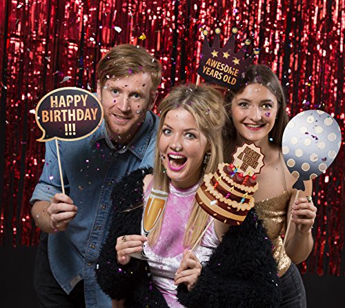 👍 HIGH QUALITY HAPPY BIRTHDAY PHOTO BOOTH PROPS CARDS. Top quality cardstock and wooden sticks, the big size is perfect for adult and kids, it will be perfectly with the birthday party theme!