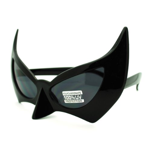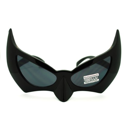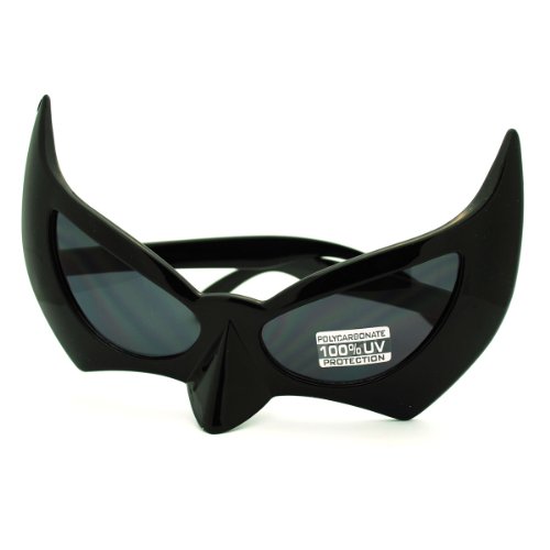 -. Brand : JuicyOrange -. Color : black -. Department : unisex-adult -. Feature : Size: 6" W x 1 1/4" H / 100% UVA & UVB Protection / Polycarbonate Lenses / Original photo and description by JuicyOrange. -. ProductGroup : Apparel -. ProductTypeName : EYEWEAR -. Size : 6" W x 1 1/4" H -. Title : Batman Mask Sunglasses Dark Knight Batgirl Cat Woman Semi Masquerade Masks