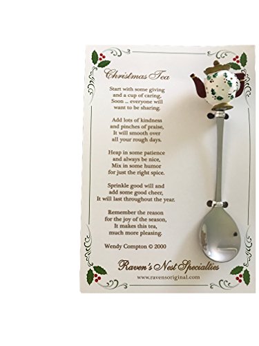 -. Binding : Misc. -. Brand : Raven's Original -. EAN : 0688975768233 -. Feature : 6 oz Raven's Original Mulling Spice / Spoon with Tea Pot Handle / Christmas Tea P on Card / Comes in clear package with red and green tie ready for gifting -. IsAdultProduct : 0 -. Label : Raven's Original -. Manufacturer : Raven's Original -. PackageQuantity : 1 -. ProductGroup : Grocery -. ProductTypeName : GROCERY -. Publisher : Raven's Original -. Studio : Raven's Original -. Title : Ravens Original Mulling Spice & Teacup Spoon with P Packaged for Gifting -. UPC : 688975768233