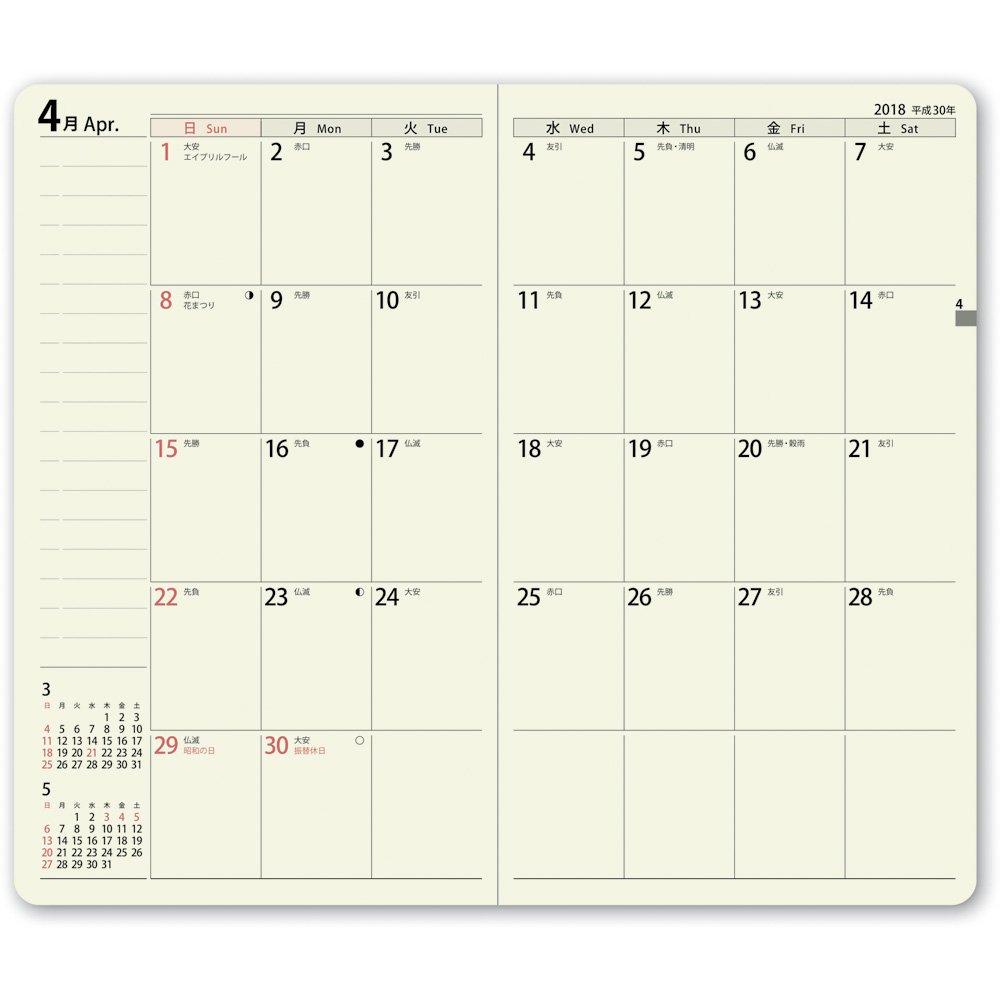 "Monthly page" Facing one month basic basic block type (beginning Sunday).
