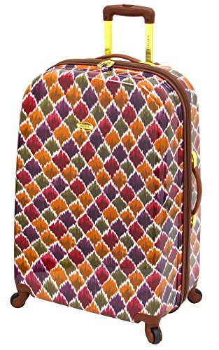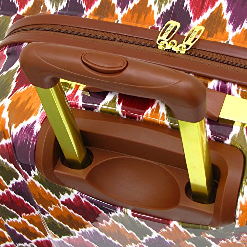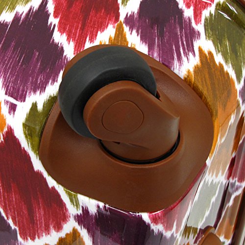 -. Feature : Durable polycarbonate composite hardside construction / Locking push button handle system / Multi-directional 360 degree spin technology 4 wheel system / Lightweight design / Zippered interior divider, zippered side pocket and tie down