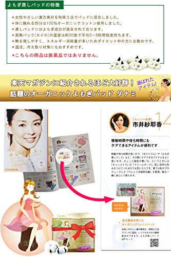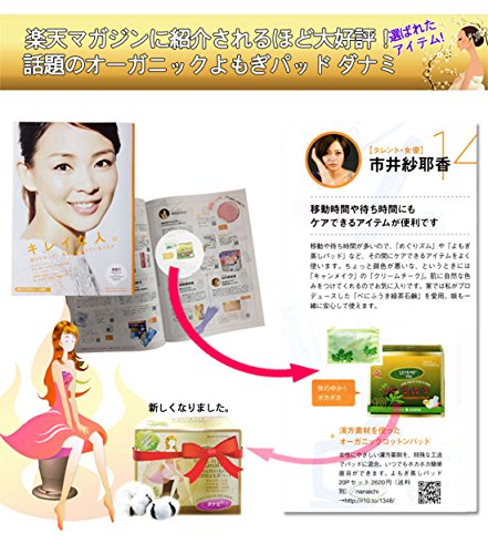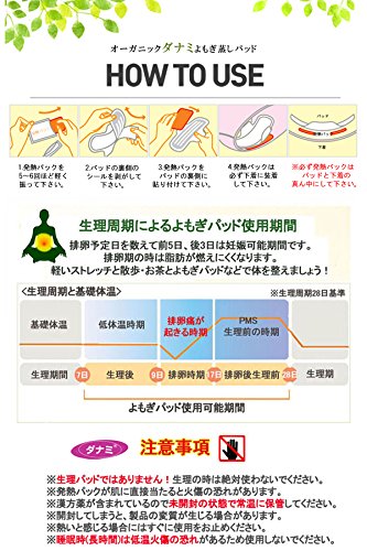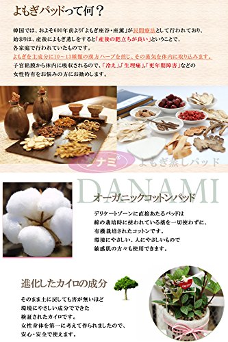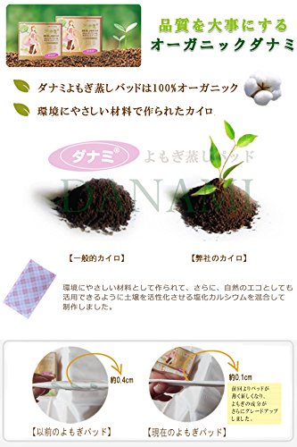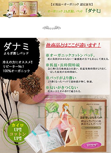 ★日本国内発送★体を暖かく守ってくれるよもぎ蒸しのホットパッド「ダナミ」 オリジナル「正規品」のグレードアップした美容グッズ! ダナミは「100%オーガニック 認定証有」のナプキン形の女性用温熱パッドです。 ■ 特徴 ■ 「使い捨てカイロ」。コンパクトで持ち運びにとっても簡単・便利です。 季節関係なく女性の美をサポートしてくれる韓国エステ商品です。 女性のことを考えて作られた「よもぎ蒸しパッド ダナミ」は、 100%天然コットンで作られ、敏感な肌、デリゲートにやさしい商品です。 「よもぎ蒸しパッドダナミ」はいきなり熱くなるのではなく、 低温の一定温度を保つことで、長時間使えるというところが一番の特徴です。 より快適で気持ちよく使える女性専用の下着装着タイプの温熱パットで、 下着にただ貼るだけ! いつ、どこでも、とっても簡単手軽にお楽しみいただける、女性にオススメの美容アイテムです。 お試し7P~お買い得120Pまでお選び、購入可能です。★商標登録 ダナミ(登録第5474590号) ダナミ 温座 蒸し よもぎパッド(登録第5449493号)