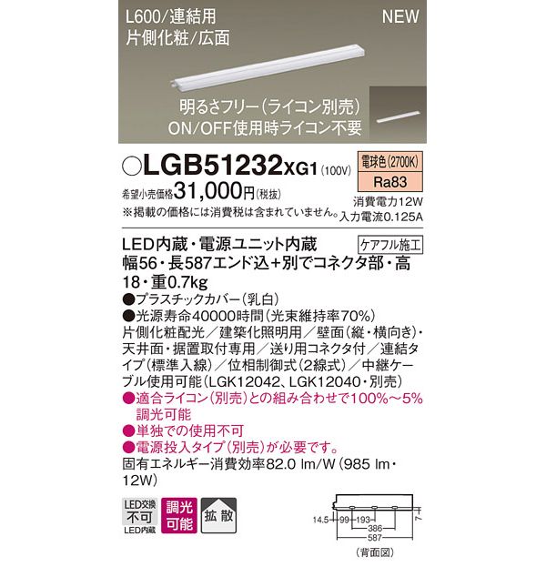 ●光源:LED(内蔵、電球色タイプ)、色温度:2700K、光源寿命40000時間(光束維持率70%)