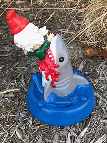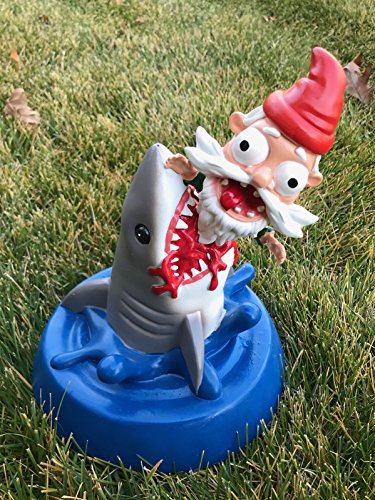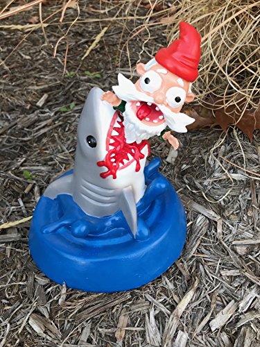 Patio Eden - Shark Attack - Funny Garden Gnome Statue - Hilarious White Elephant or Novelty Gift Idea