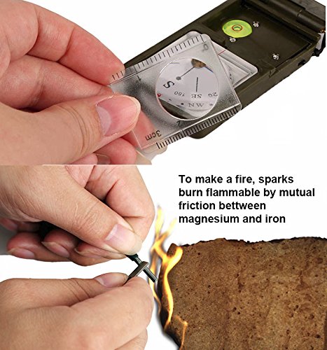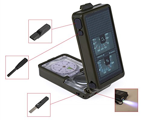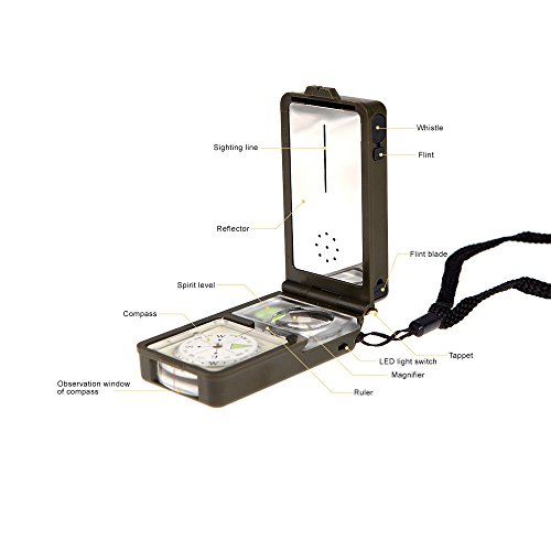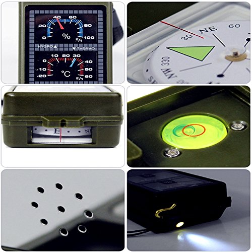 -. Feature : 10 functions in a compact tools: LED light, compass, thermometer, hygrometer,whistle, mirror, level, magnifying glass, ruler, flint fire starter. / It is a good tools for outdoor sports like hiking, camping, biking and spelunking. / Tiny and portable, very useful, with it, you will not need to take too many heavy necessary tools for your outdoor sports. / Great as a party favor; suitable for adventurist! Handy for Hiking, Camping, Spelunking, etc. / Portable size, you can take it everywhere with your outdoor activities as a multi tools.