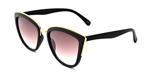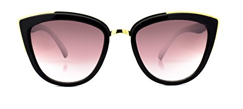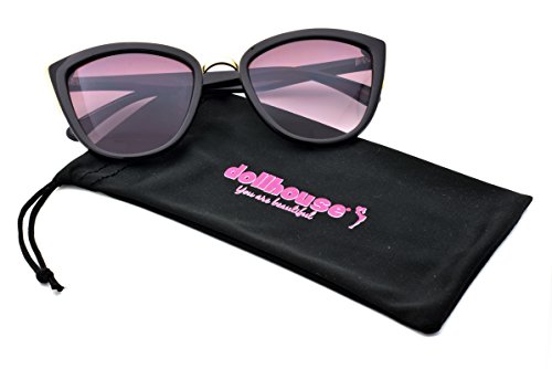 Dollhouse Women's Cateye Sunglasses, Opaque Shiny Black Frame with Metal Bridge and Brow Detail, APG Smoke Lens, 55mm