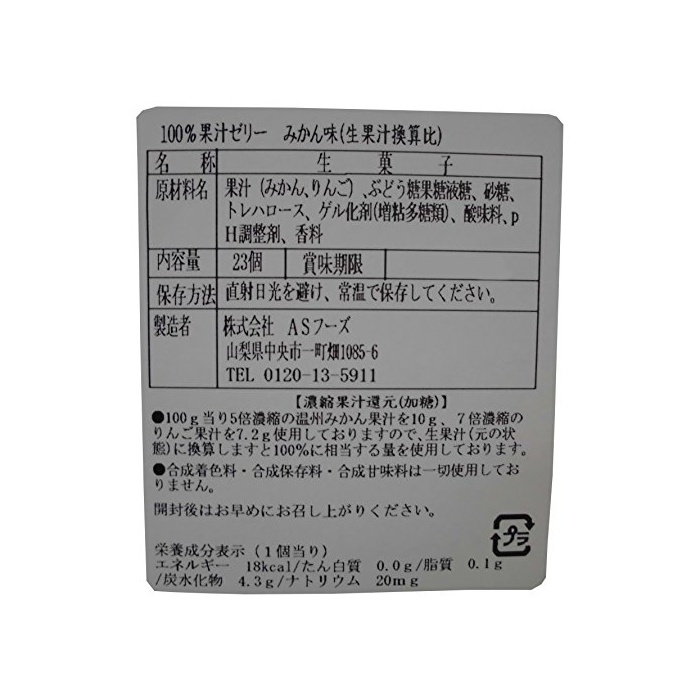 원본상품명: ASフズ 果汁100%のみかんゼリ 23粒