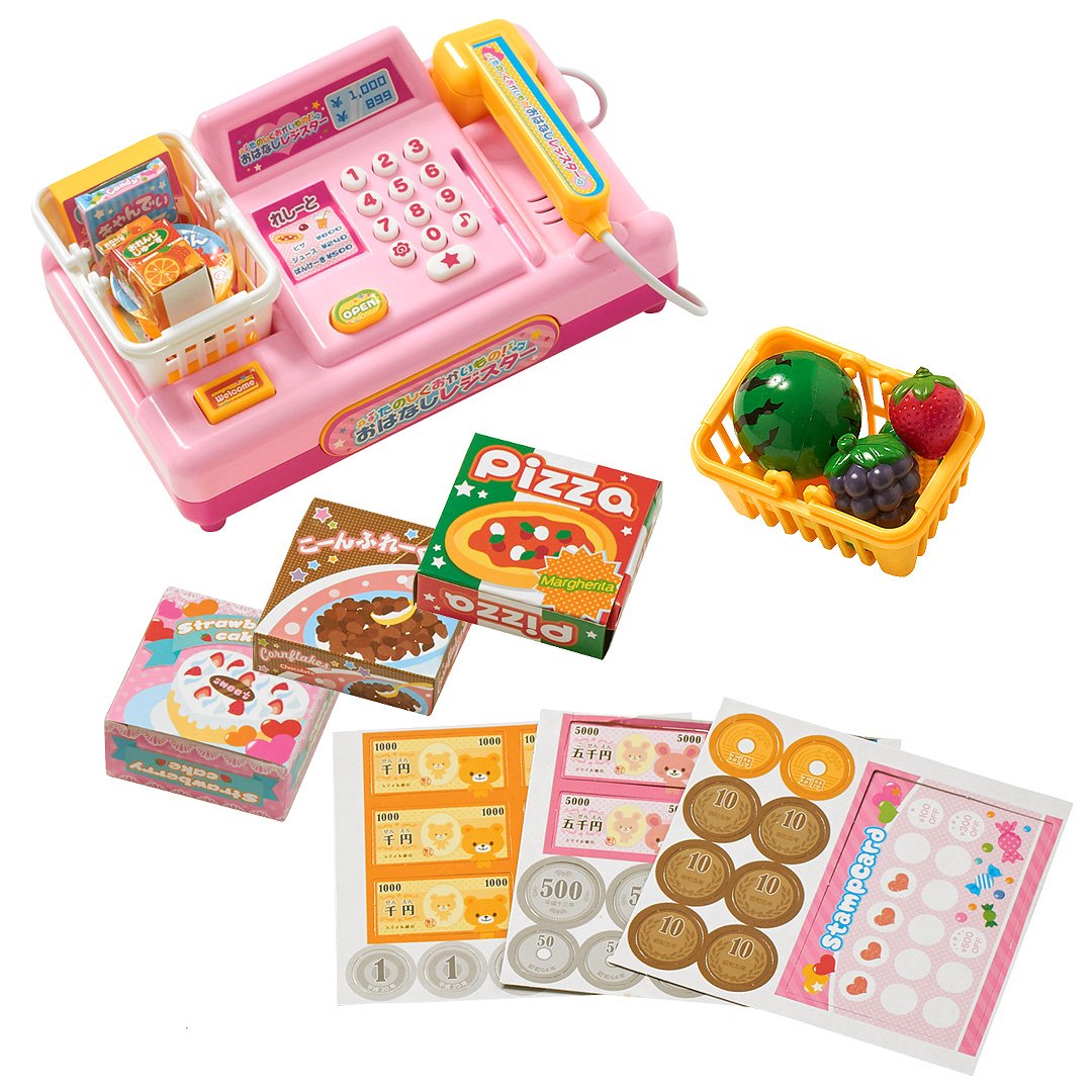 ボタンをおして!おしゃべりしたり、メロディがなる「レジスター」 食べ物:7種類 お金:9種類 スタンプカード:1枚 ※単3乾電池 2本使用(テスト電池入り)