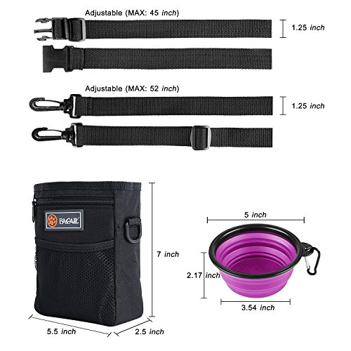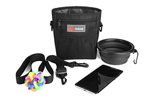 -. Title : Bagail Black Dog Treat Training Pouch With Silicone Collapsible Pet Bowl Easily Carries Pet Toys, Kibble, Treats – Built-In Poop Bag Dispenser
