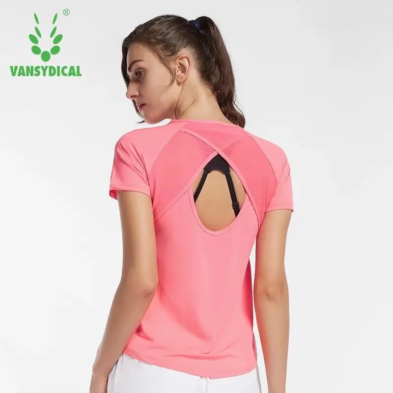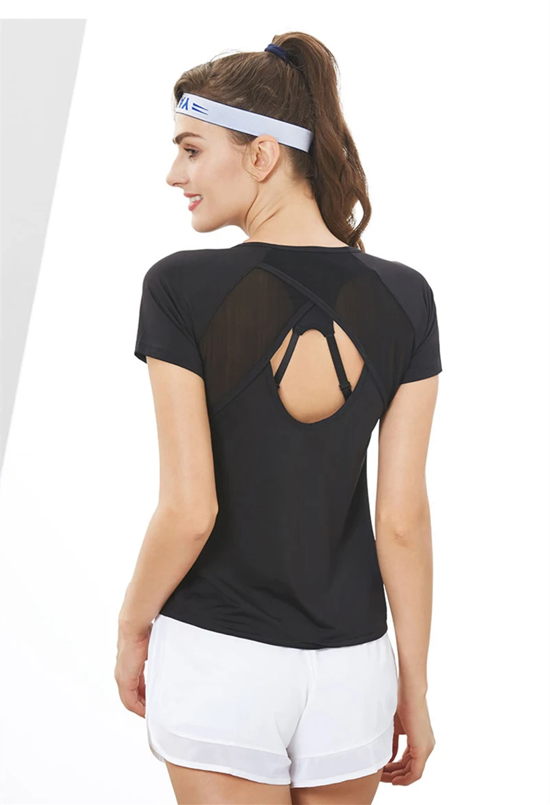 Women Sports T-shirt :Sexy Mesh Hollow Out Yoga Shirts
