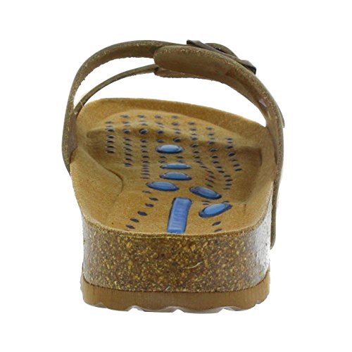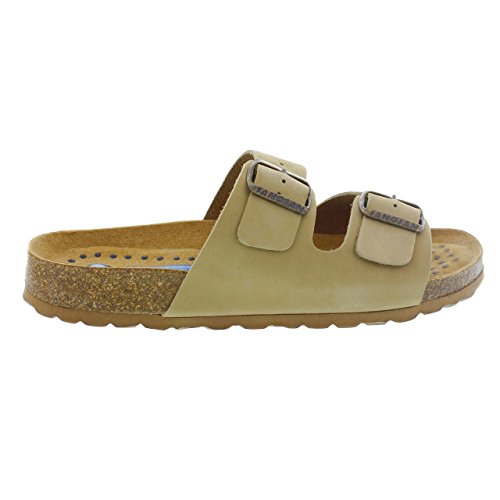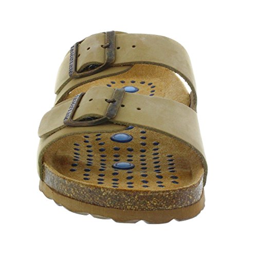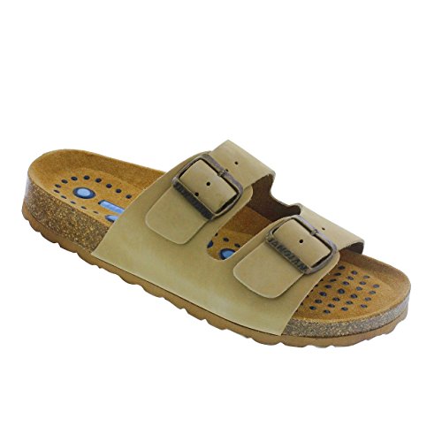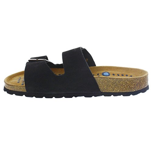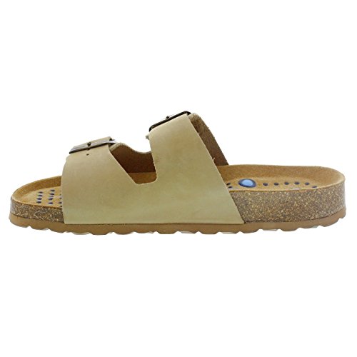 Binding : Apparel Product Description The Aston is a classic two strap sandal with adjustable straps. Soft Nubuck Leather material and genuine suede lining. Featuring the SietelunasTM Comfort patented technology. SPECIAL FEATURE: SIETELUNASTM Comfort Footbed After eight years of RD, our Sietelunas® technology was developed, with highly durable gel injected nodes to prevent abrasion, and a honeycomb-like structure that delivers greater cushioning, stability and comfort. Seven strategically placed magnets and 100 micro beads stimulate the most important of the 7,000 nerve endings in our feet. A recent study by the University of Alicante in Spain certified our Sietelunas® technology as helping to improve the distribution of pressure on the sole, and increasing stability and absorption. Using the art of reflexology and magnetic therapy, this technology targets reflexology points on the feet to improve circulation and provide a constant massage while walking. UPPER MATERIAL: Soft Nubuck leather feels soft to the skin and flexes with ease. INSOLE: PREMIUM GRADE MICRO-FIBER LINING: The flexible Micro-Fiber lining, which is gentle on the skin, nestles up softly against your foot and adjusts to its contour. The open-pored and thus very breathable surface makes for a comfortable foot climate, even during more strenuous physical activity. FOOTBED MATERIAL: 100% NATURAL CORK: Cork is a sustainable material extracted from the bark layer of the cork oak. This natural product is insulating and offers very good cushioning. OUTSOLE: EVA (ethylene vinyl acetate) is a high-quality, very light, elastic material with extremely good cushioning. As a result, it smooths out slight irregularities in the floor and ensures that every step is softly cushioned. 0