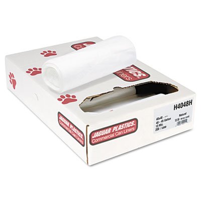-. Feature : Jaguar H4048H Heavy Grade Can Liners, 45gal, 13mic, 40 x 48, Natural, 200/Carton / Star seal bottom helps prevent leakage. High-density polyethylene offers superior film strength; ideal for paper and non-sharp objects. Individually folded and dispensed.