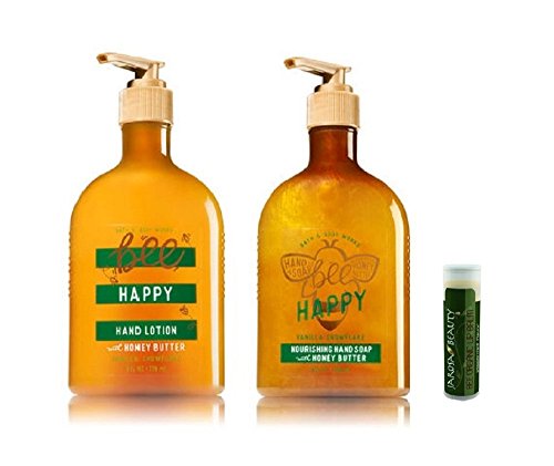 -. Title : BEE HAPPY Bath & Body Works Vanilla Snowflake with Honey Butter Hand Lotion & Hand Soap Set with a Jarosa Bee Organic Peppermint Lip Balm by Jarosa Gifts