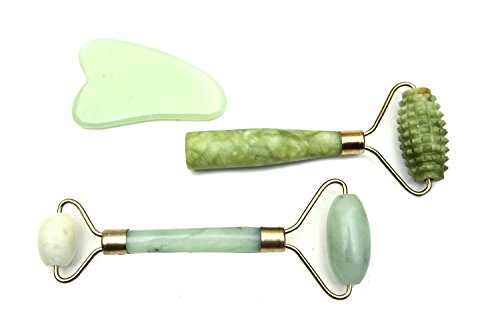 Studio : Jade Stone Publisher : Jade Stone Binding : Health and Beauty Product Description Ancient Chinese medicine has used the jade's power to destroy negative Qi. Now you can hold the power of the jade with these two facial Jade rollers and jade fascia scrapper. Besides chasing away bad Qi, the polished and spikey jade gives a cool, soothing effect, increases blood circulation, and diminishes the appearance of fine lines from muscle tension. 0