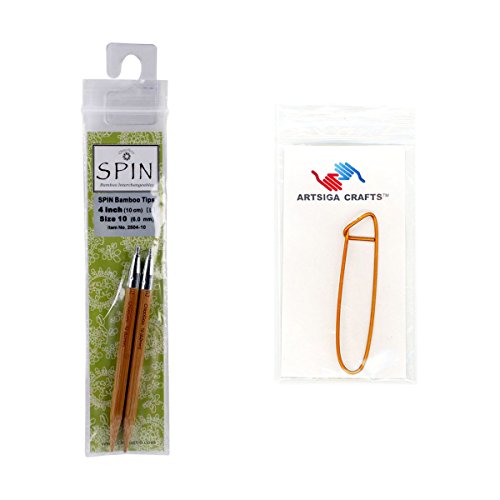 - Bundle includes 1 ChiaoGoo Needle Tips 4-inch (10cm) for Spin Interchangeable Set; Size US 8 (5mm) with 1 Artsiga Crafts Stitch Holder 2504-8