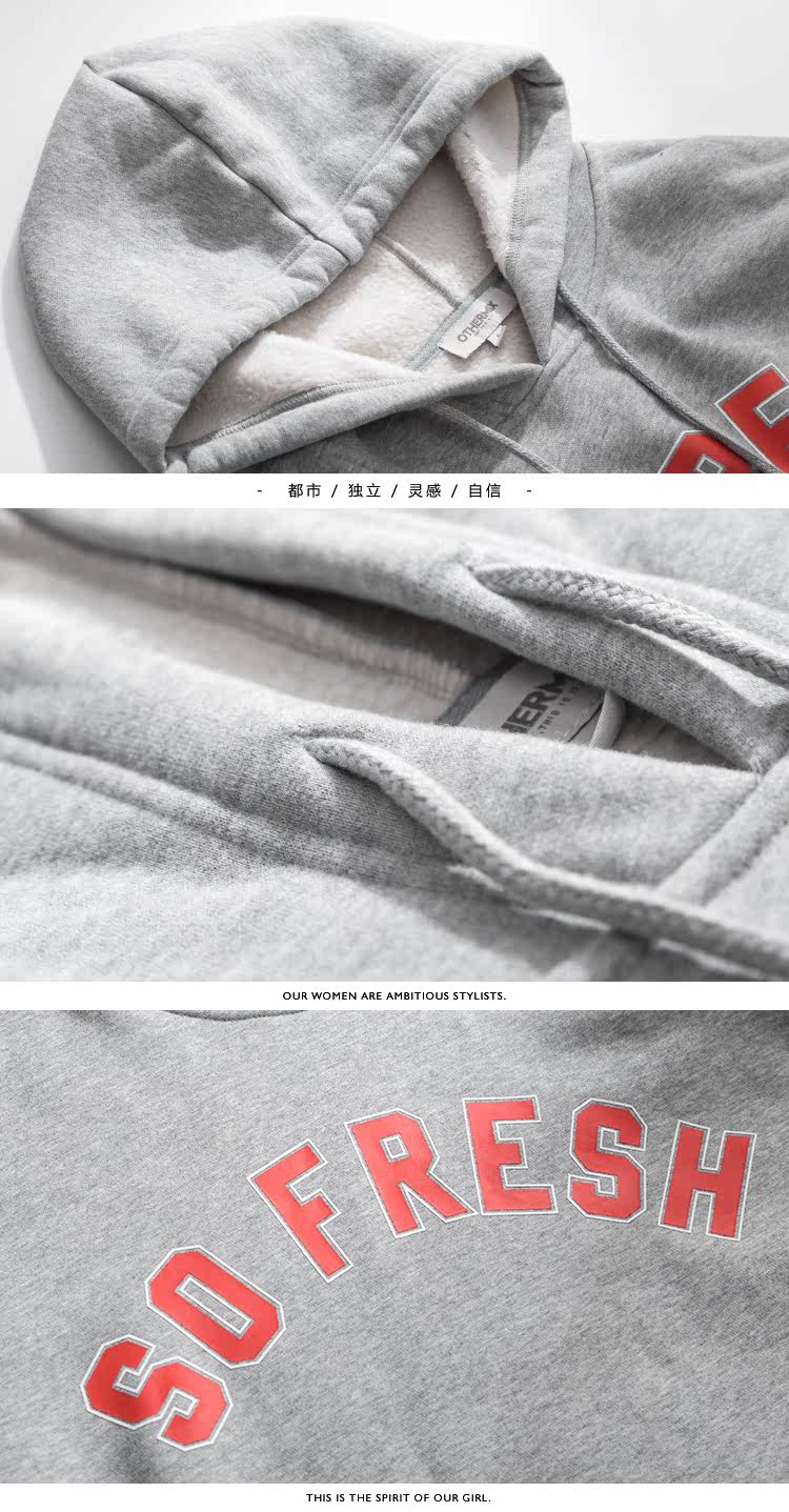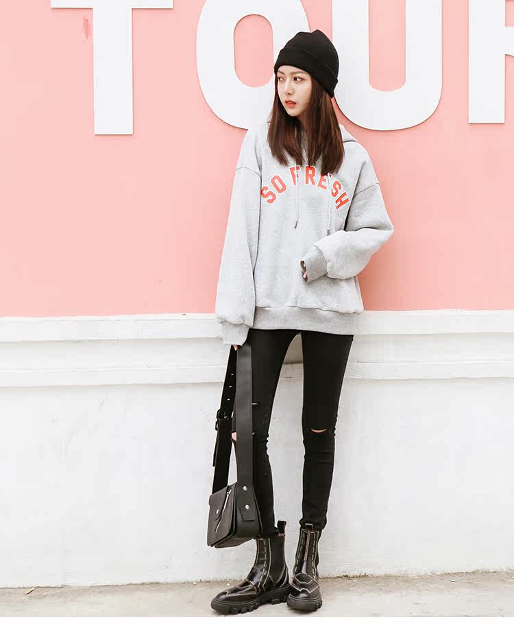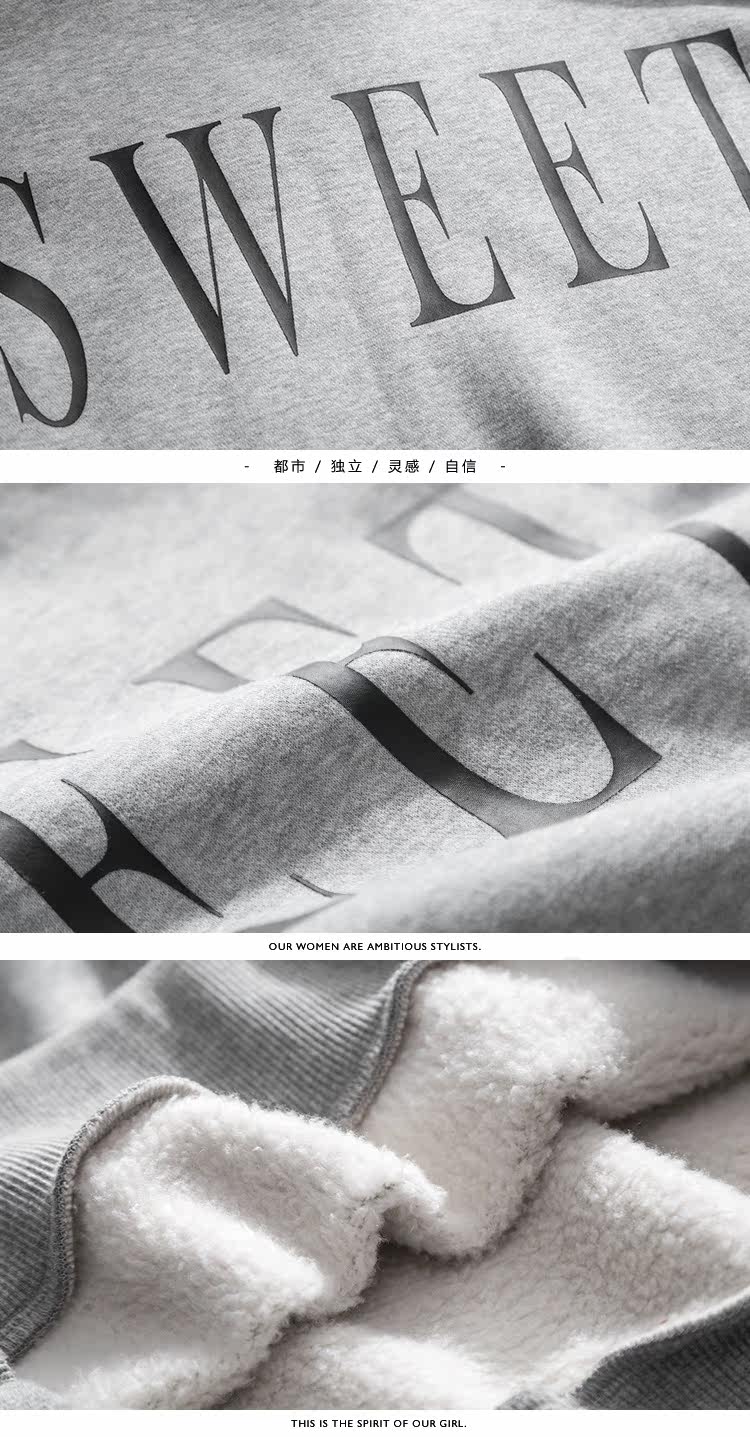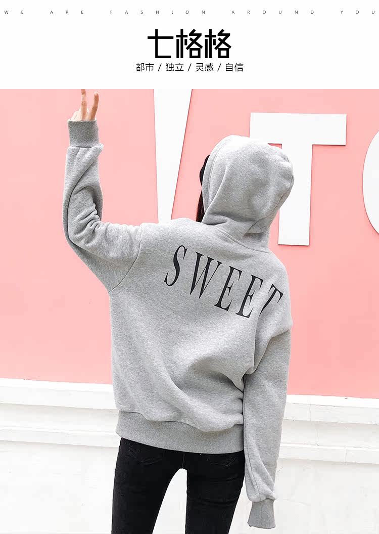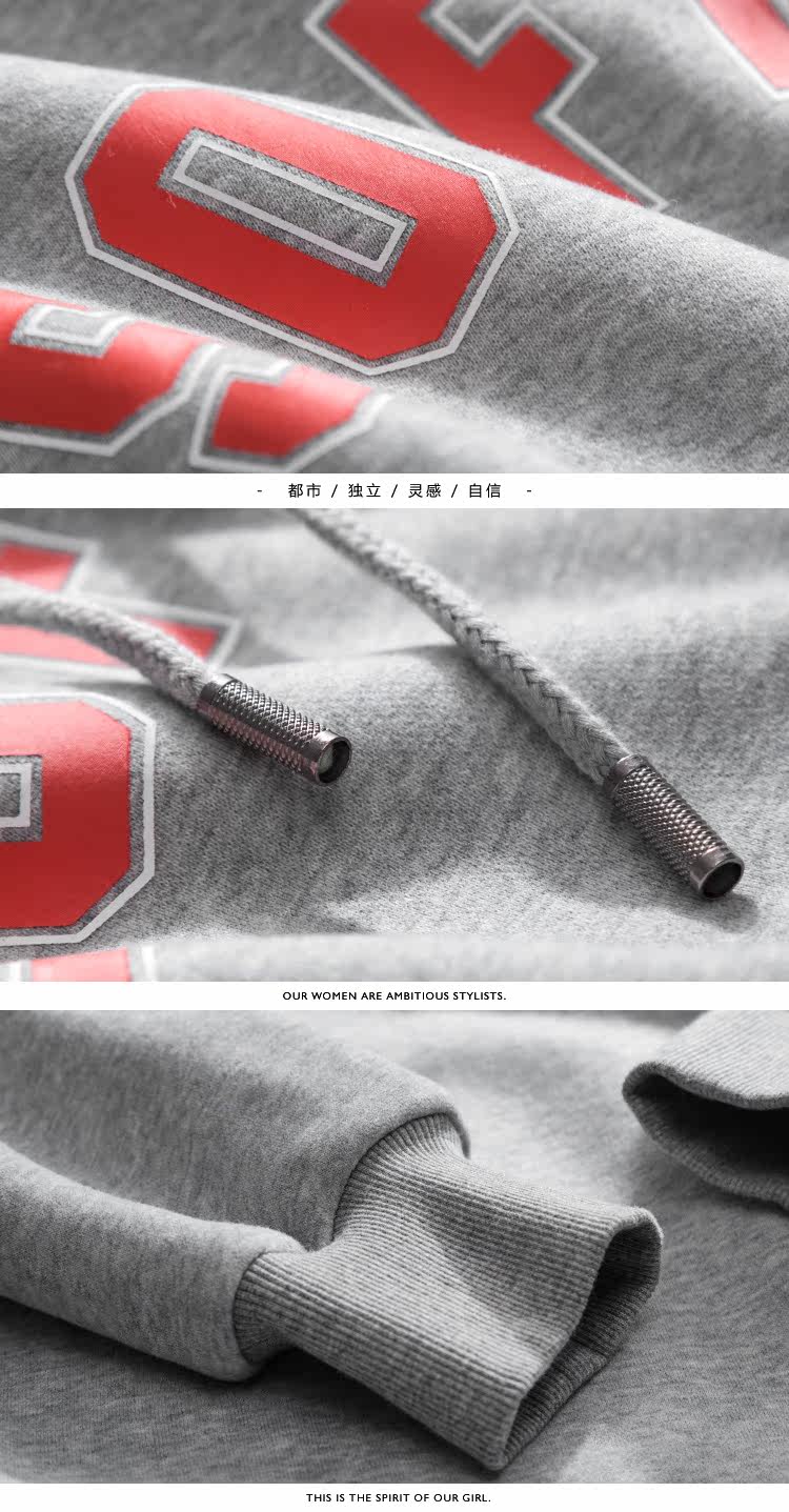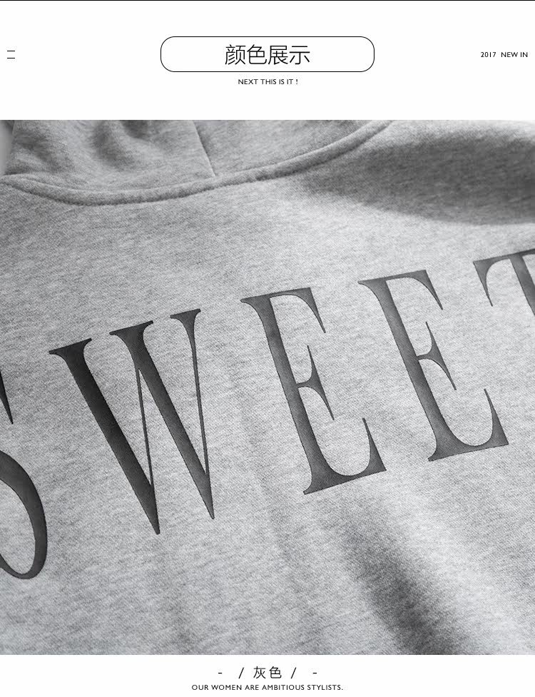 | Anne | 160 | 45 | 76/61/88 | S | 灰色的卫衣加上撞色的字母不会显得单调 |