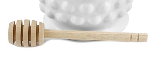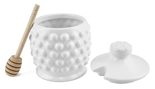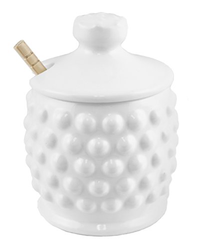 Studio : Creative Co-op Publisher : Creative Co-op Product Description Keep your honey in your reach with this decorative honey jar! Features a white honey jar, hobnail style, with one wooden honey dipper - Measures 5" H. What a beautiful housewarming gift! 0