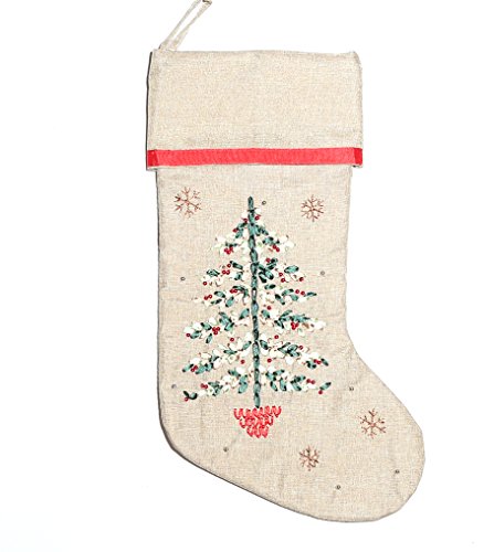 Holiday Lane Natural Embroidered Stocking