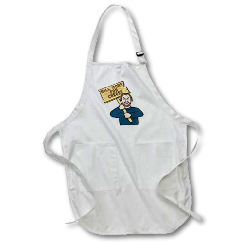 3dRose apr_117044_4 Funny Humorous Man Guy with a Sign Will Work for Cheese-Full Length Apron with Pockets, 22 by 30-Inch, Black