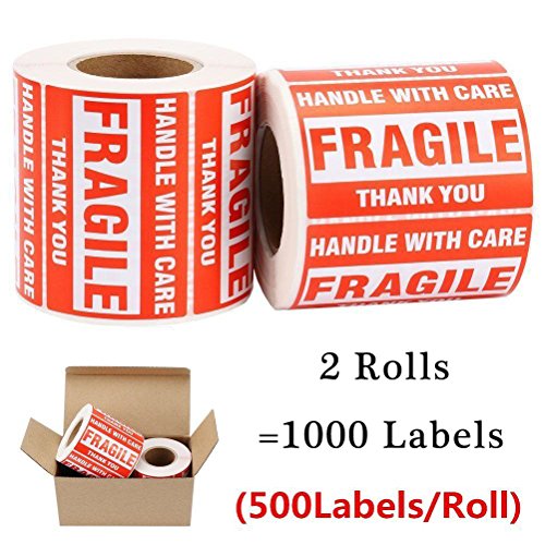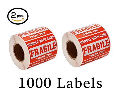 SJPACK 1000 Fragile Stickers 2 Rolls 2'' x 3'' Fragile - Handle With Care - Thank you Shipping Labels Stickers (500 Labels / Roll)