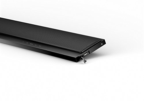 Elevate every scene and song with this ultra-slim, 2.1 channel Bluetooth sound bar plus wireless subwoofer that delivers impressive sound and thunderous bass in any room. Stream music easily from your smartphone4 and even control your sound bar and TV with a single remote. All in a stylish, 2-inch design that lies flat or mounts discreetly on a wall. Thin has never sounded bigger.Feature