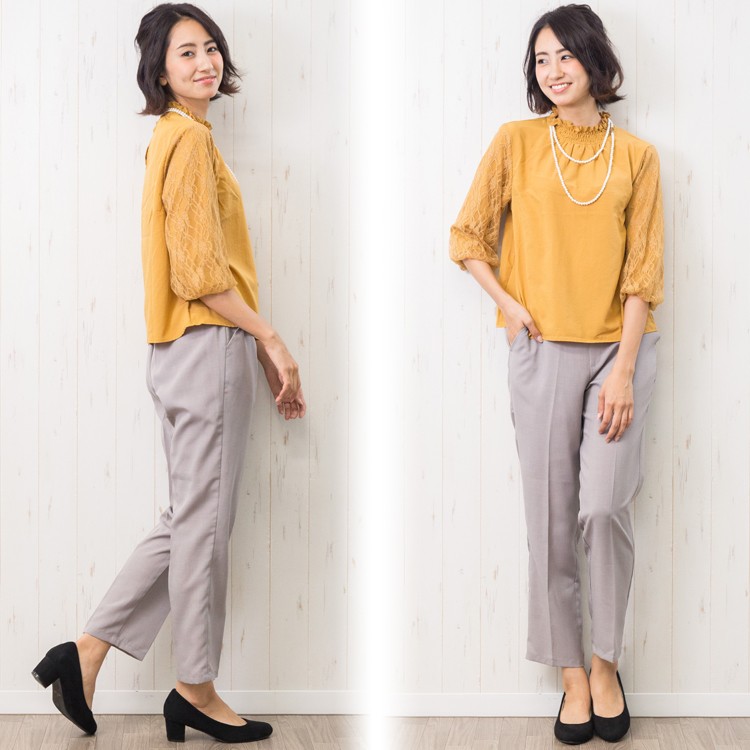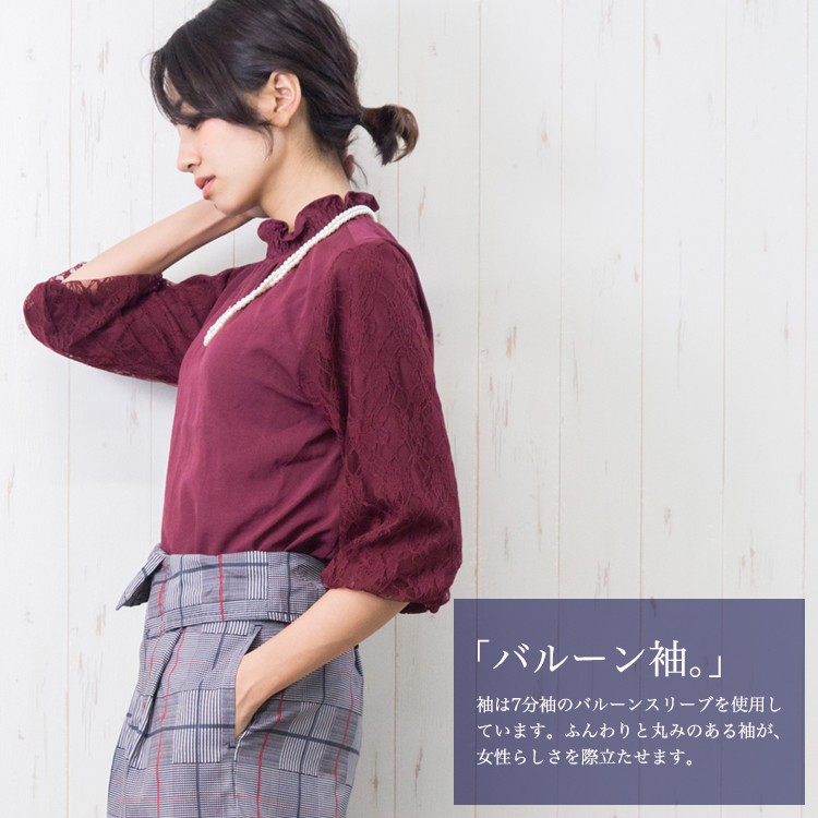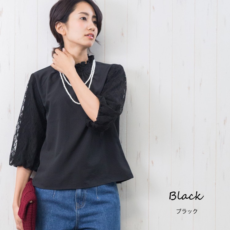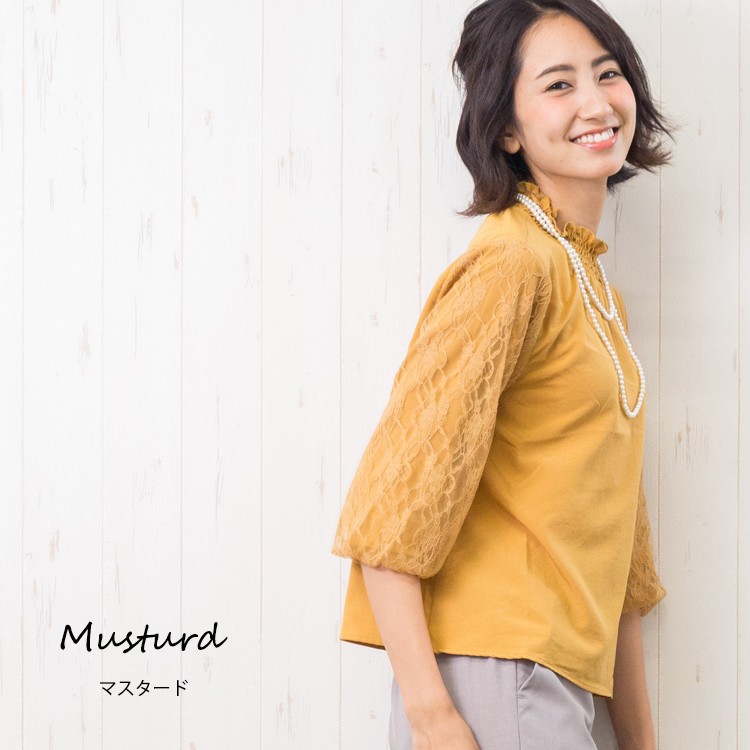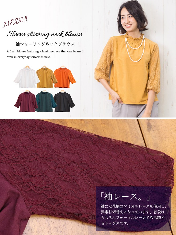 商品名:袖シャーリングネックブラウス