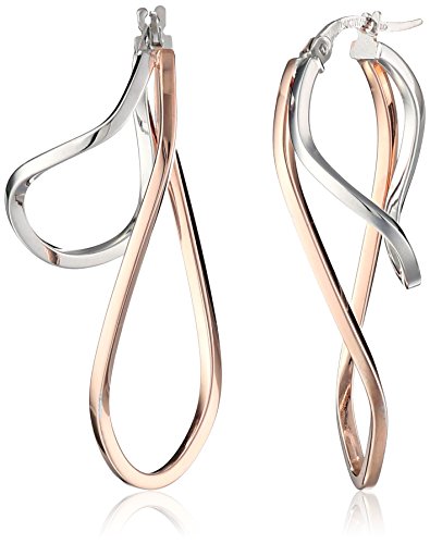 -. Title : 14k Gold Italian Rose and White Gold Oval Twist Hoop Earrings