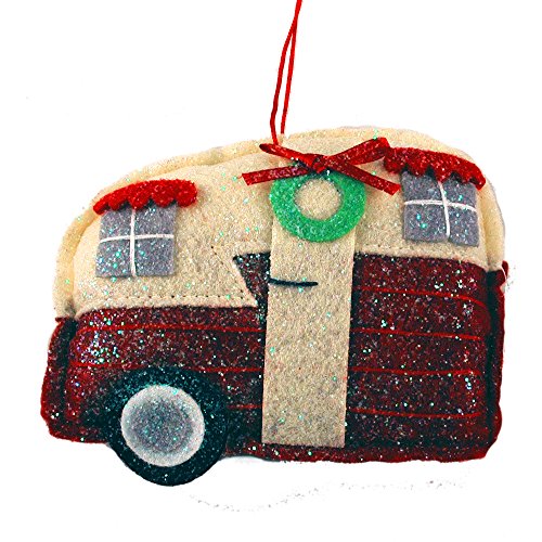 Glittery Fabric Travel Trailer Hanging Christmas Ornament