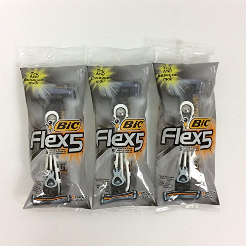 3 Packs of BIC Flex 5 Disposable Razors Men Single Packs, One Razor Each Pack, Three Razors in Total