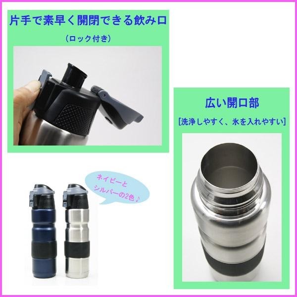 ステンレス『真空断熱』構造で、冷たい飲料で約18時間、温かい飲料で約10時間、効果を発揮します(外気温20度の場合)。 |