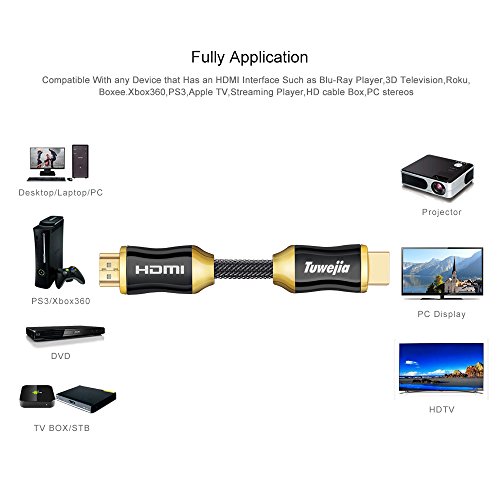 UNIVERSAL COMPATIBILITY - Tuwejia 4K HDMI Cable up to 18Gbps, support 4K/HD TVs, Fire TV, Apple TV, Blu-ray players, DVD Players, Computer Monitors, HD Projectors, PS4, PS3, XBox one, Xbox 360 and other devices with HDMI port.
