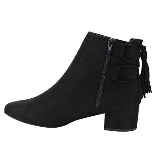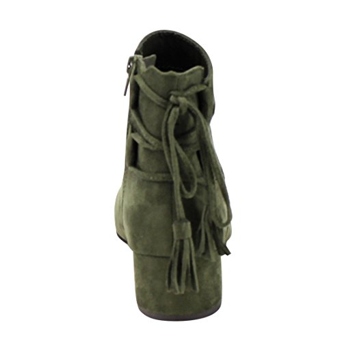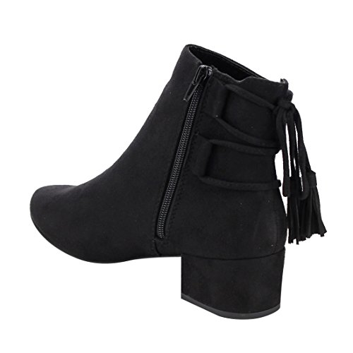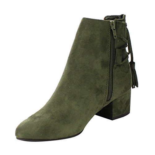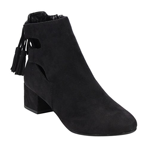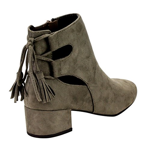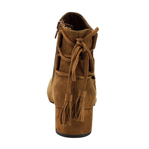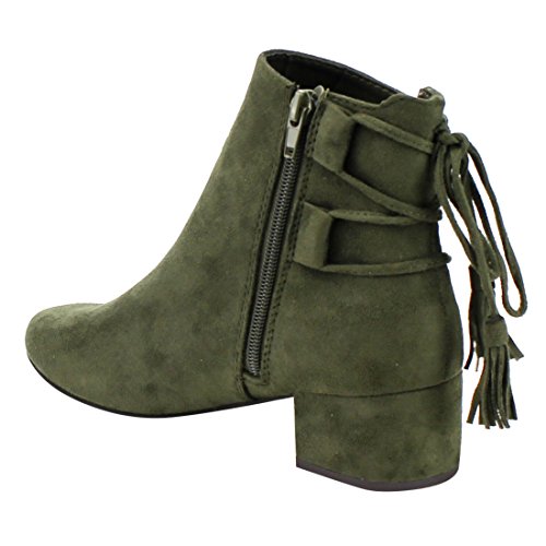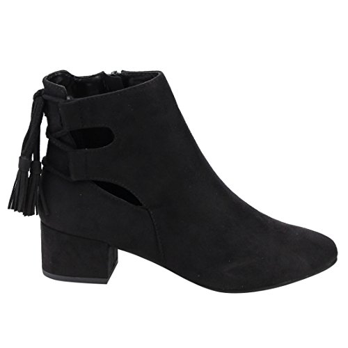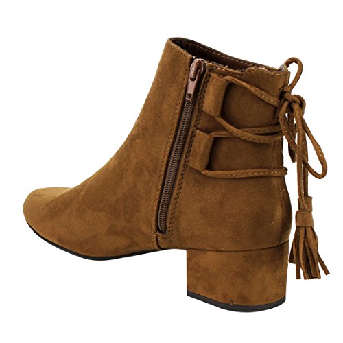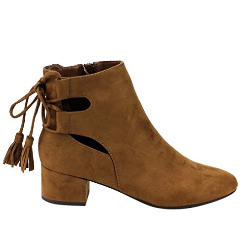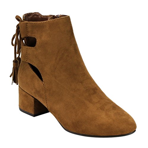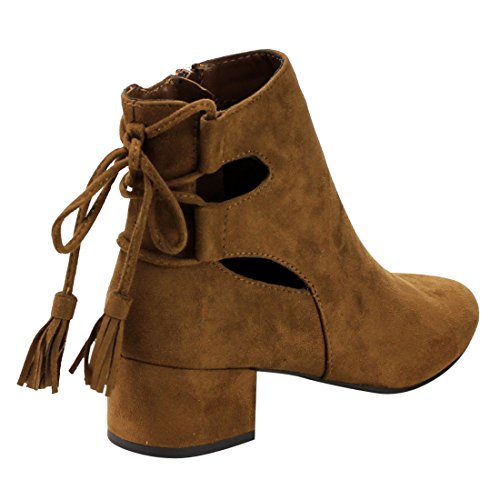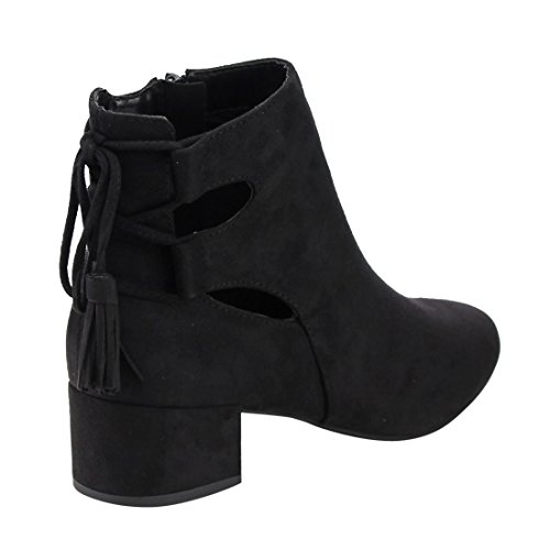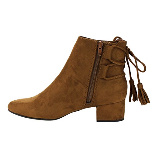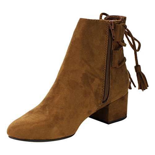Product Description When it comes to fashion, you'll be kicking butt and taking names all season long in the street-chic ankle booties. Featuring lace up with tassels back, side cut design and wrapped block heel. 0