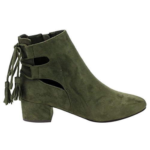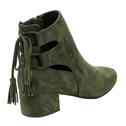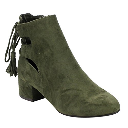 Cityclassified IB84 Women's Cut Out Lace Up Mid Block Heel Ankle Bootie
