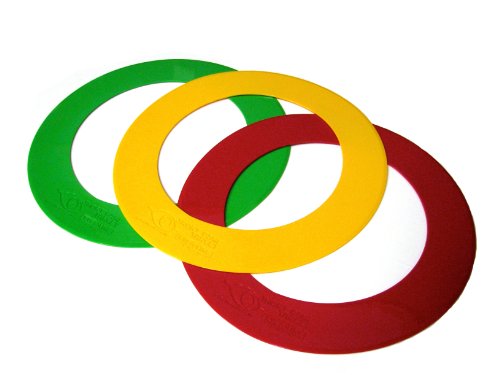 Brilliant Colors The set consists of 3 high quality rubber 15-Inch circles 1 of each color Red, Yellow, and Green, they are bright, easy to see