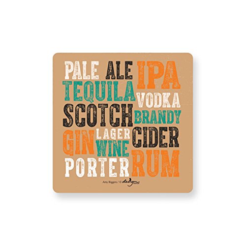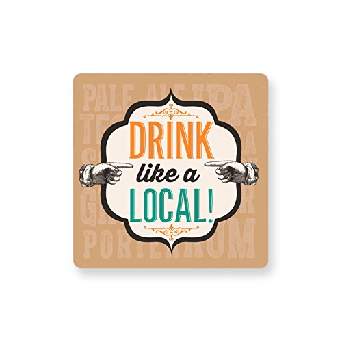 - Coasters have the phrase "Drink like a local" on one side and a text design of types of alcohol on the other