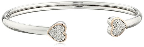 -. Title : Sterling Silver and 14k Rose Gold Heart Bangle Bracelet (1/5cttw, I-J Color, I2-I3 Clarity)