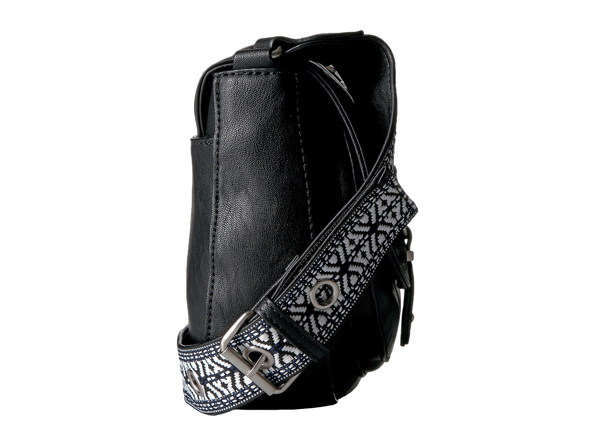 | Product Information SKU: #9028200Go for that boho-chic look! Faux leather construction.Magnetic snap closure.Adjustable shoulder strap.Exterior boasts metal decor and a back slip pocket.Flat bottom.Lined interior features a zipper pocket and slip pocket.Imported.This product may have a manufacturer's warranty. Please visit the manufacturer's website or contact us at warranty@support.zappos.com for full manufacturer warranty details.Measurements: Bottom Width: 9 1?4 in Depth: 2 1?2 in Height: 8 1?2 in Strap Length: 52 in Strap Drop: 24 in Weight: 1 lb 3.2 oz |