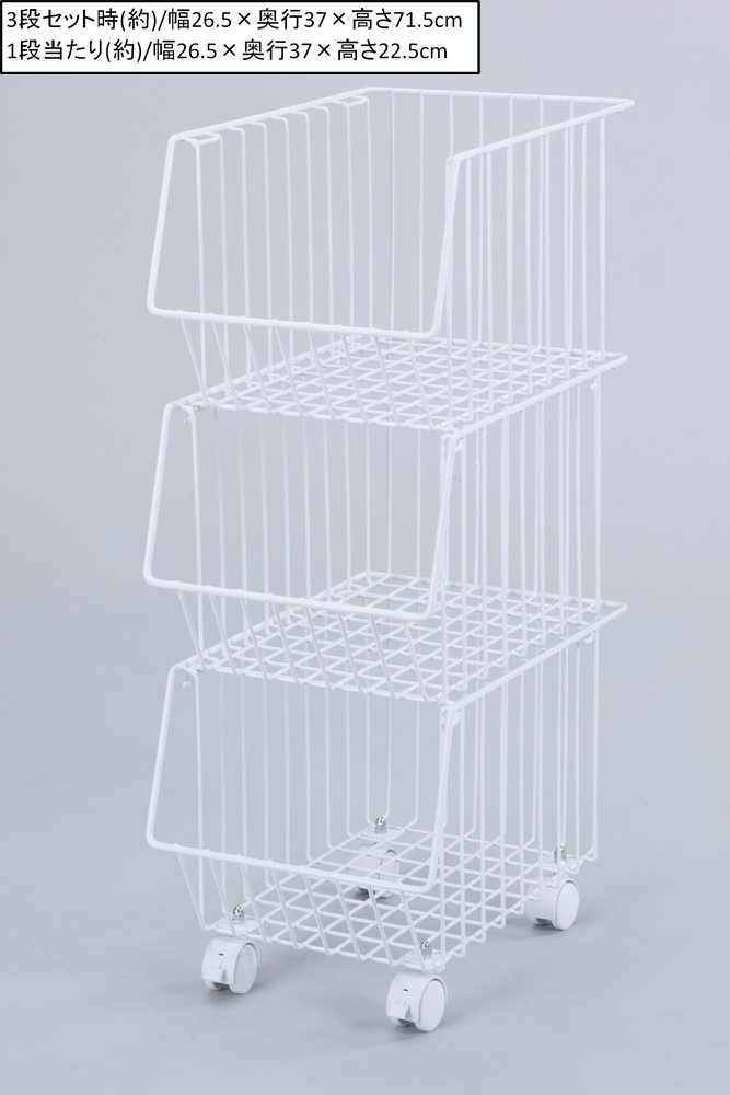 × height 22.5 cm (per stage) ● Weight: about 2.55 kg ● Load capacity: up to about 5 kg of basket (※ However, when stacking up to 3 kg), up to casters 20 kg ● Weight (kg): 0 ● Bulk buying