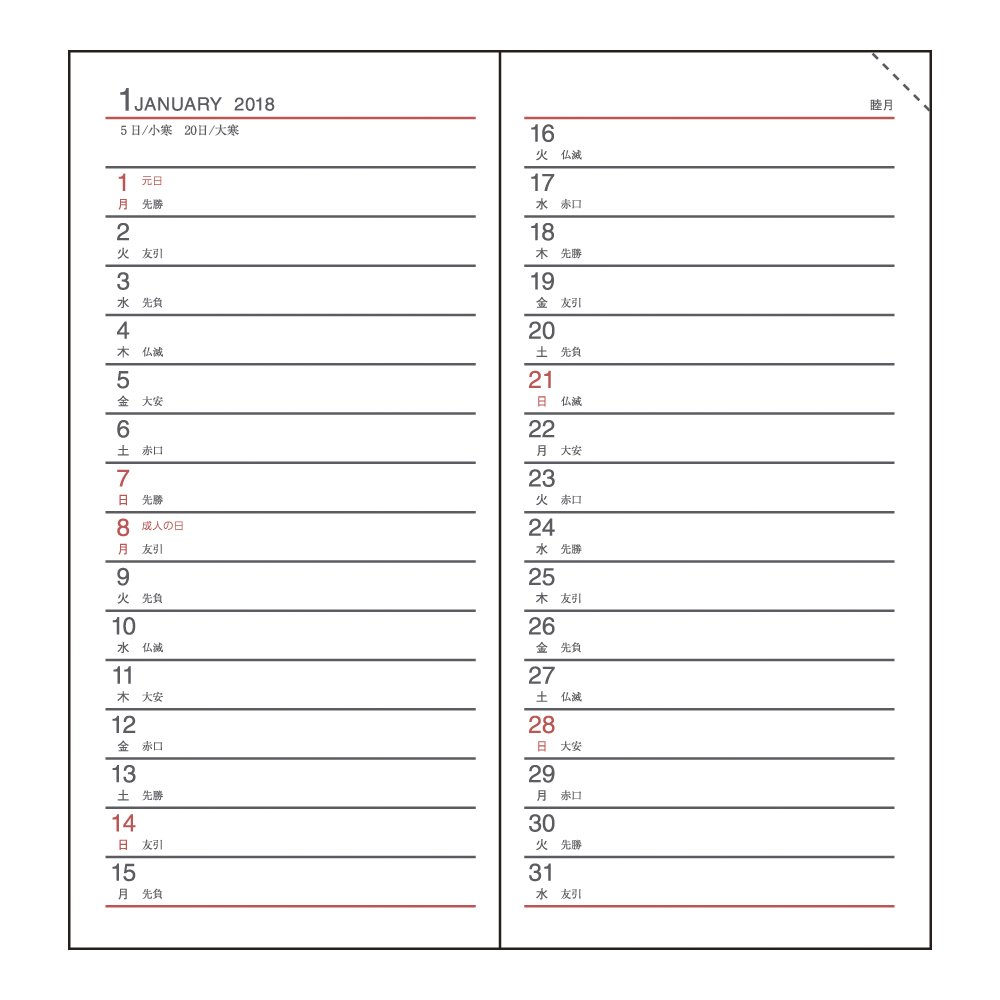 Product name: Daigo notebook appointment Starting January 2018 Monthly ruled ruler Black E1001