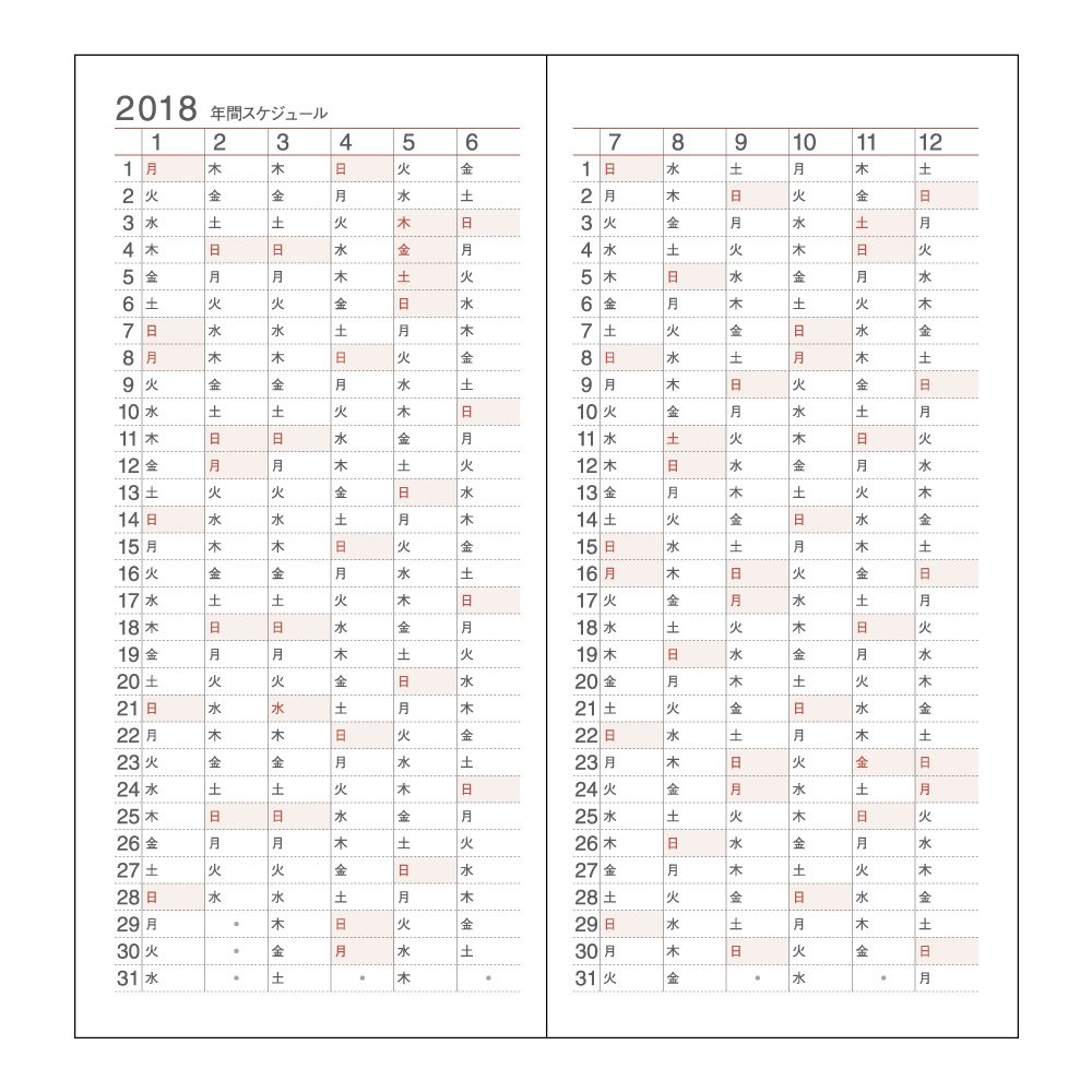 The monthly schedule is a simple horizontal rule type calendar, making continuous schedule easy to grasp.