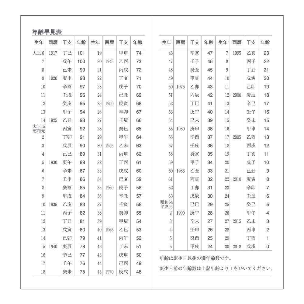 Address book / emergency contact address memo / age age chart