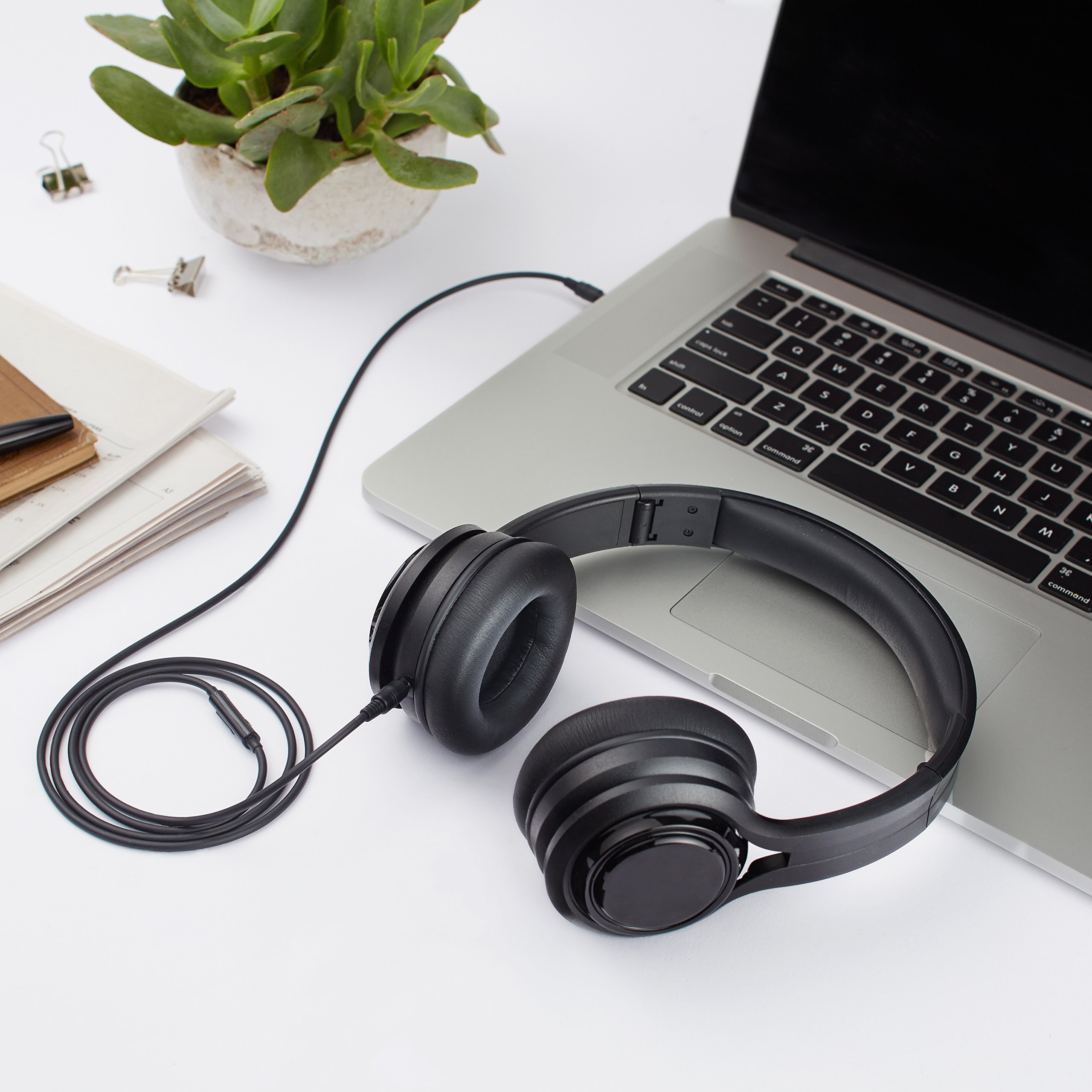 Amazon Basic sealed on-ear headphone Folding inline microphone / with remote control Black HL-006334