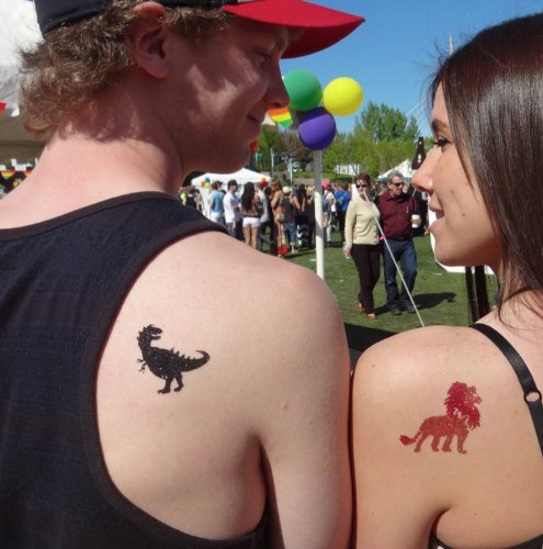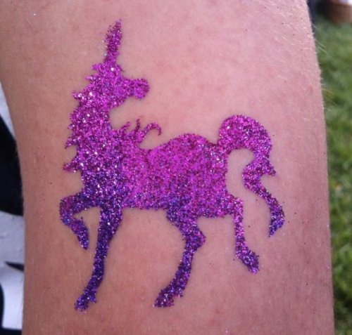 -. Feature : 12 squeeze bottles of 1.25 Oz Metallic Glitter each color. / 100 Self Adhesive 3 layer Stencil-Mix: (Our best selling designs) / 1 Bottle of Skin Glue 15ml (about 100 tattoos per bottle) / 1 Bottle of Black Colorini (for an airbrush effect - flat black, can be used with or without glitter) / Platinum Pure White Glitter 10 ML + large Clean-Up Brush