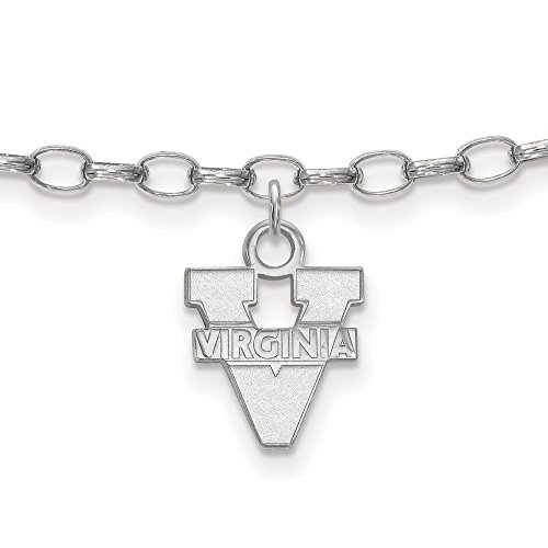 Solid 925 Sterling Silver University of Virginia Anklet 9" - with Secure Lobster Lock Clasp (2.5mm)