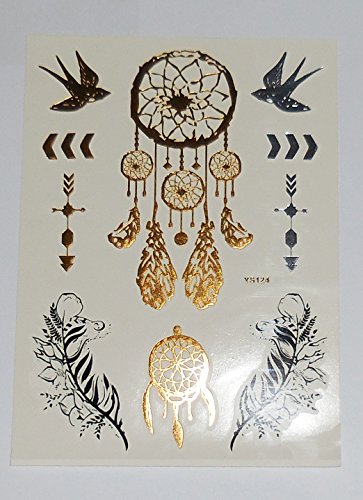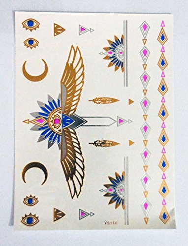 -. Feature : 6 Sheets of Sexy Temporary Tattoo / Premium quality metallic flash temporary tattoos /Stunning gold, Silver, Turquoise and black temporary jewellery tattoos. / Waterproof: Metallic flash temporary tattoos will last several days and keep its glitter look, so you can wear them at beach or pool parties all the summertime / Safe n Non Toxic - These beautiful jewelry tattoos are non-toxic and fun for all ages, including kids & adults, and can be worn anywhere on your body. / Good looking designs: Includes feathers, infinity signs, necklaces, bracelets, Hawaiian tribal signs and more. / ✮ 100% MONEY BACK GUARANTEE: If, for whatever reason, you don't absolutely love your order, simply return it, and we'll refund every penny (or send a replacement, if there is a problem). ✮ QUICK DELIVERY: Amazon P.R.Ime will deliver your beauty products to you as soon as possible for your parties, festivals and holidays.