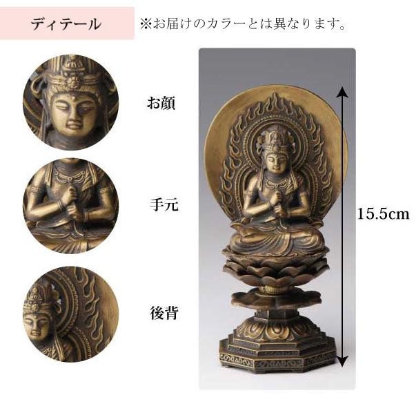 fk094igrjsいつも身近にお守り本尊をおくことが、心の支えとなるでしょう サイズ (約)幅8.0×奥行6.5×高さ15.5cm 個装サイズ:11×18×8cm 重量 660g 個装重量:720g 素材・材質 亜鉛合金(ダイカスト製) 仕様 仏師:牧田秀雲 古美色仕上げ 紙箱入 製造国 日本 ひつじ・さる年生まれのお守り本尊 ※古美色は古めかしい独特の質感を表現するために「くすみ」がございますが、塗装時の汚れではございません また、職人が1点1点色付けしておりますので、色合いが微妙に違うことがございますご了承ください いつも身近にお守り本尊をおくことが、心の支えとなるでしょう