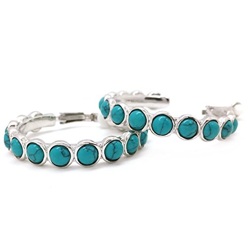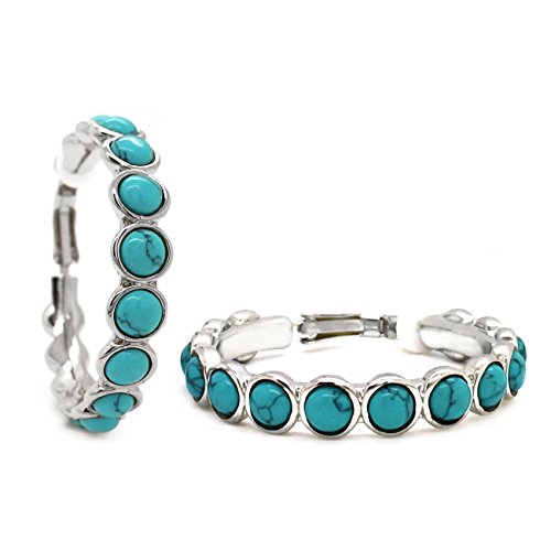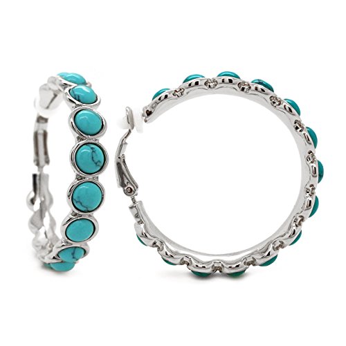 These chic hoops are made of alloy base metal and are set with blue resin accents. Clip on backings secured these hoop earrings with ease and comfort. For non pierced ears. These fashion clip on earrings will make the perfect choice for your special someone for Valentine's gift, Christmas gift, Mothers day gift, Birthday gift, Anniversary Gift, or Bridal party gifts.Feature