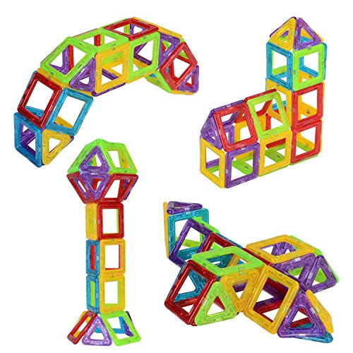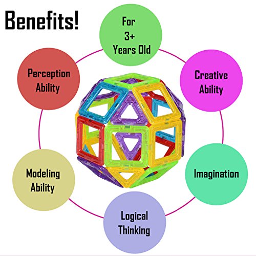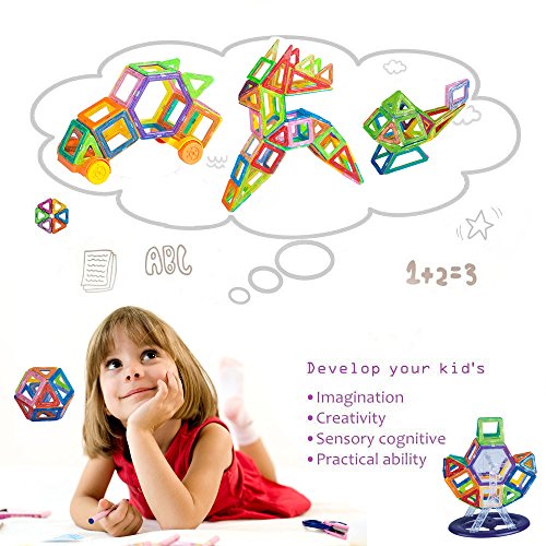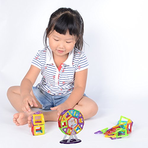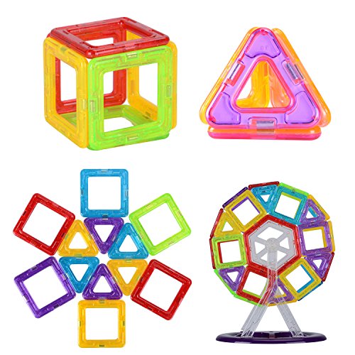 -. Feature : These magnetic building blocks toy set helps activate brain creativity and develop brain development. For kids, it can develop their brain and logic thinking ability. / The magnetic tiles is made from non-toxic,Smooth edge of each tile will never hurt baby's little hands. It is kid friendly and safe. / Easily build anything from two-dimensional to three-dimensional shapes with powerful magnets holding them firmly in place making stacking the block easy. / Create your own design or with our instruction booklet, your child can easily start building the basic forms from 2D shapes to 3D models; It's up to your imagination to build. They are both educational and entertaining. / The Set includes : Square 24pcs, Triangle 12pcs, Hexagon 2pcs, Cards 12pcs, Ferris, wheel, bracket 8pcs. Material ABS+Magnet. Please note that the actual product color may vary from the picture.
