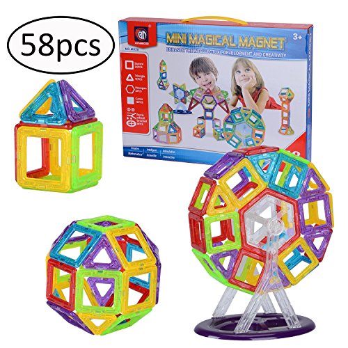 -. Title : Lennov 58PCS Mini Magnetic Tiles building blocks Set 3D Designer Construction Set Educational Stacking Toys Kits For Kids Gift