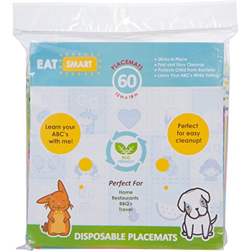 -. Feature : 60 count disposable placemat topper for table / 12" X 18" disposable placemat for table / BPA Free and Food Safe / Waterproof / Easy use Peel, Stick, Dispose